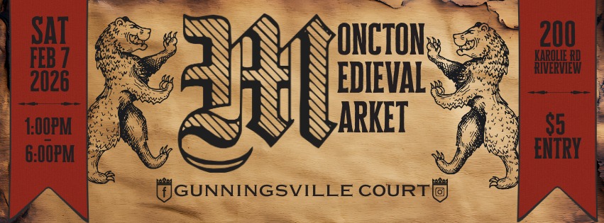 Event by Gunningsville Court 200 Karolie Rd, Riverview, NB, Canada, New Brunswick E1B 1R1 Duration: 5 hr Public · Anyone on or off Facebook Welcome to the Moncton Medieval Market, a one-day winter event… Come visit our 20 artisan and artist vendors, meet local LARP & historical groups, and enjoy live music and mead! * Open market: 1:00PM – 6:00PM* Entry $5 Follow our page and stay tuned leading up to the event as we introduce and showcase our vendors!