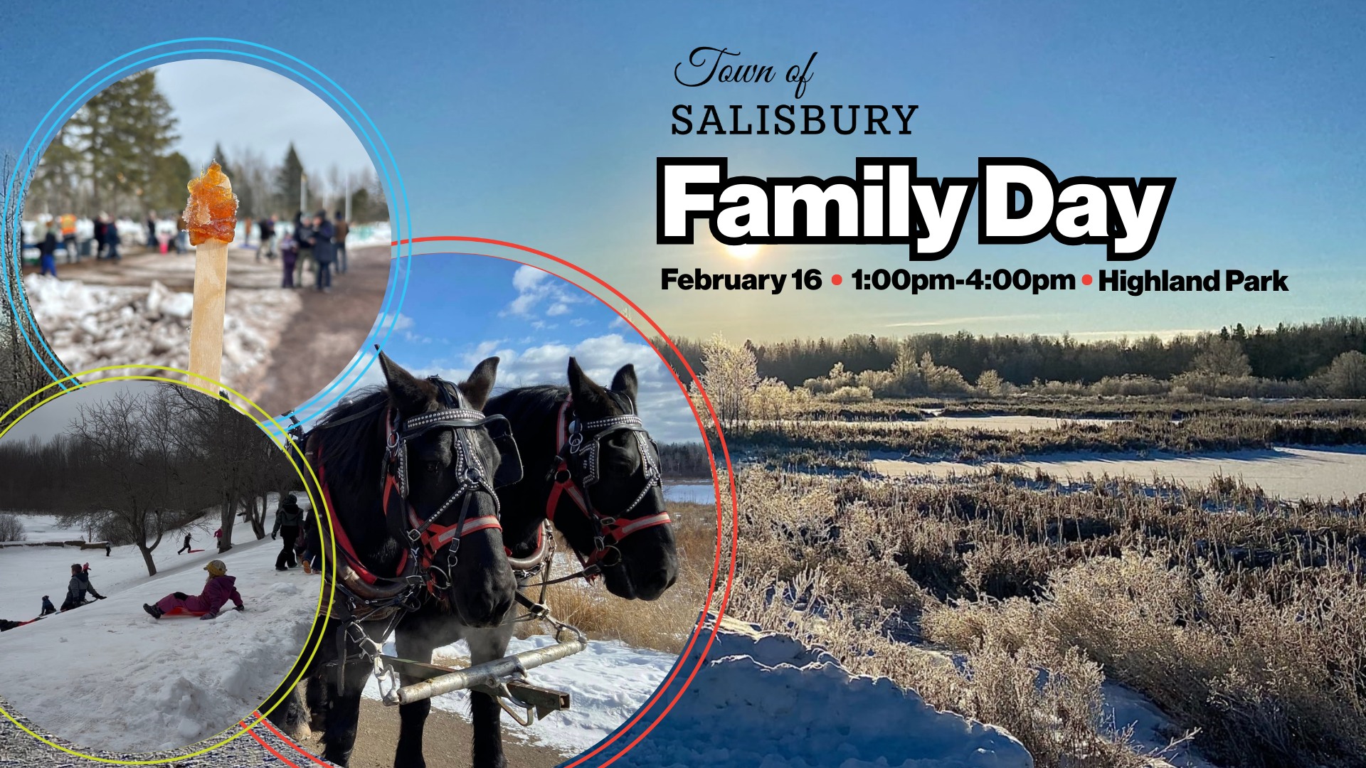 Event by Town of Salisbury Highland Park, Salisbury, NB Public · Anyone on or off Facebook Family Day WinterFest 2026 will take place at Highland Park on Monday, February 16th from 1:00pm to 4:00pm. Here’s what you can expect: Live performance by Star Sixty Nine on the AmphitheatreBBQSleigh rides around the Wetland TrailLlamasBeavertailsMaple candyHot chocolateSleddingGames and Activities...and more!