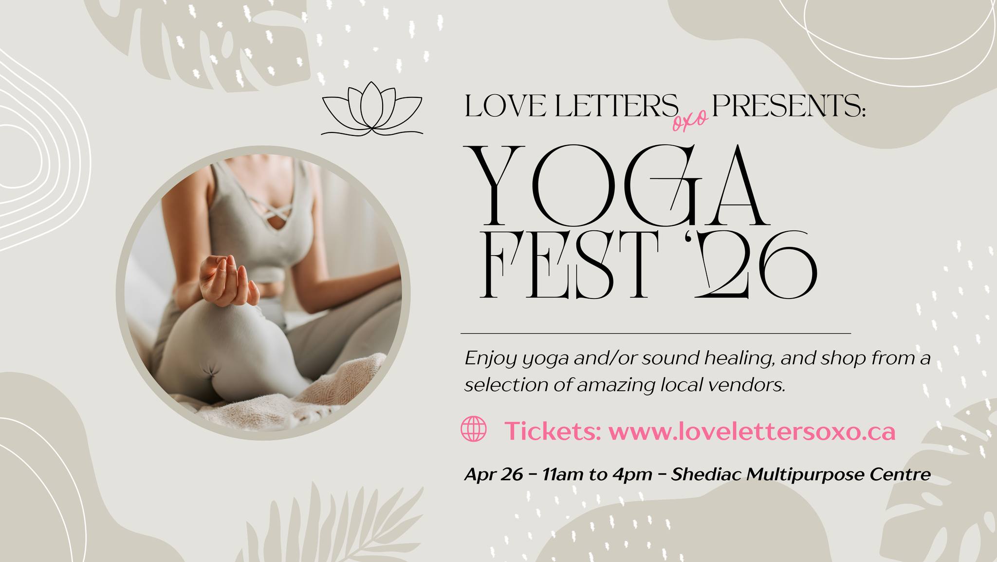 Event by Love Letters oxo 58 Festival St, Shediac, NB E4P, Canada Join us for a beautiful day of movement, mindfulness, and community connection: Sunday, April 26, 2026 11:00am – 4:00pm Shediac Multipurpose Centre Spend the day nourishing your body and soul, and shopping from an incredible selection of local vendors all under the same roof. YOGA & SOUND HEALING EXPERIENCES Participants can choose their preferred class experience (see full schedule and ticket details on our website): Melanie LeClair Gentle Yin / Somatic Touch…